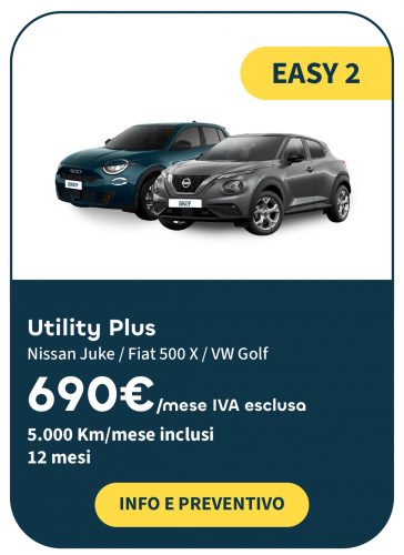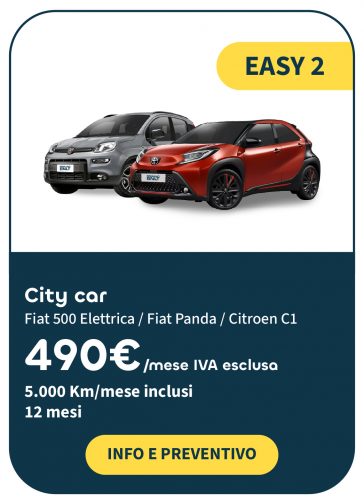 Scegli tra due formule chilometriche: EASY 1 con 1.500 km al mese inclusi o EASY 2 con 5.000 km al mese inclusi.