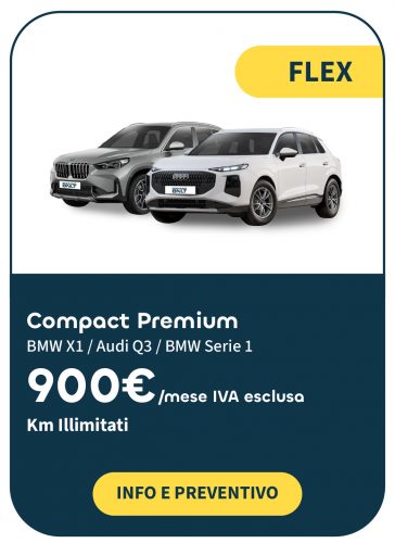 Con la formula di noleggio FLEX a partire da un solo mese, puoi usufruire di tutti i benefici del noleggio a lungo termine, mantenendo un canone mensile fisso e la libertà di restituire l’auto quando preferisci, senza vincoli di durata e con chilometri ILLIMITATI.